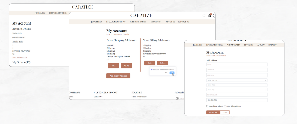 Address Management : With our address management functionality, users can conveniently manage their addresses to ensure accurate and efficient order fulfillment.