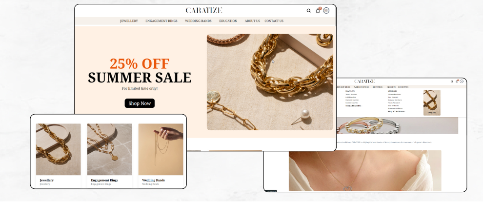 Category-Based Shopping : Provide your customers with an intuitive browsing experience by organizing your jewelry inventory into easily navigable categories. From rings to necklaces, earrings to bracelets, ensure that each category is well-defined and visually appealing.