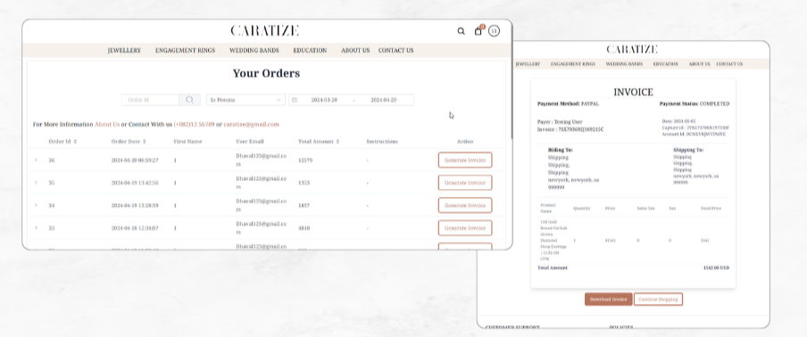 Order Management: After the purchase is completed, the seller receives an order notification. They then prepare the jewelry items for shipping and update the order status accordingly.
