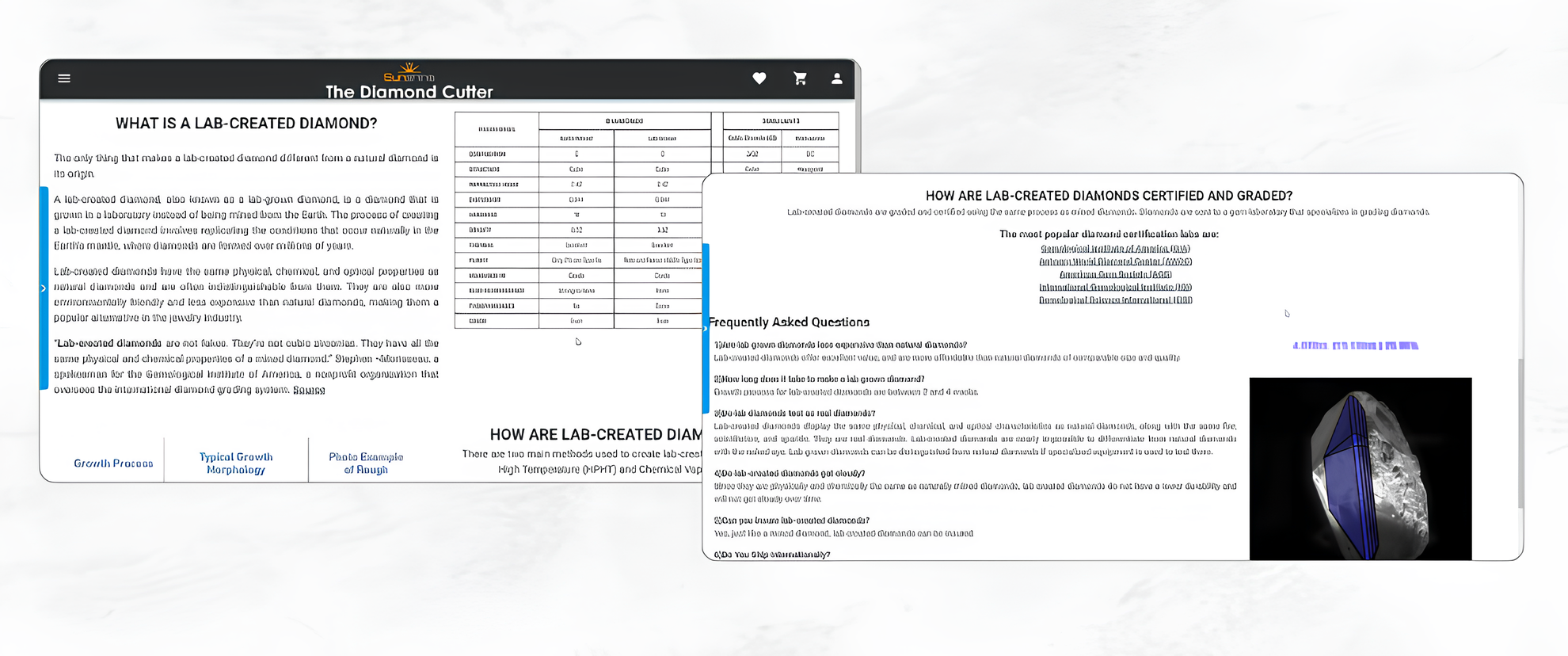 Friendly Tools : Interactive elements such as zoom functionality and 360° view enhance the inspection experience, allowing users to examine diamonds in detail with ease.