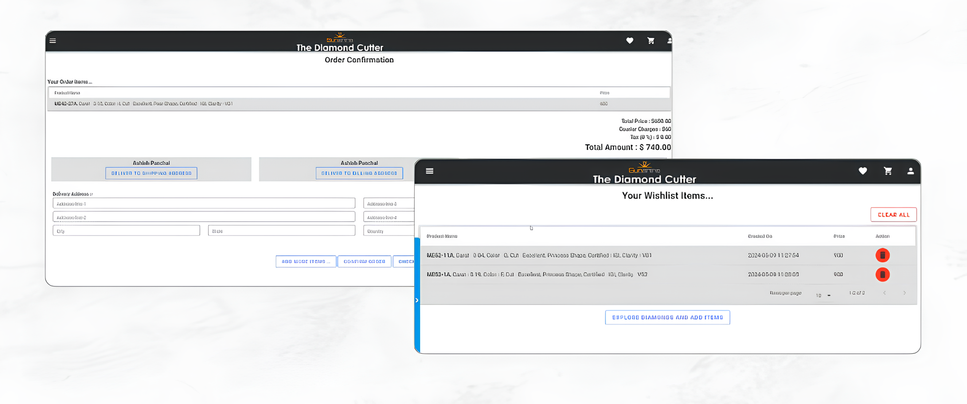 Wishlist and Favorites : Save favorite diamonds to a wishlist for easy access and comparison later.